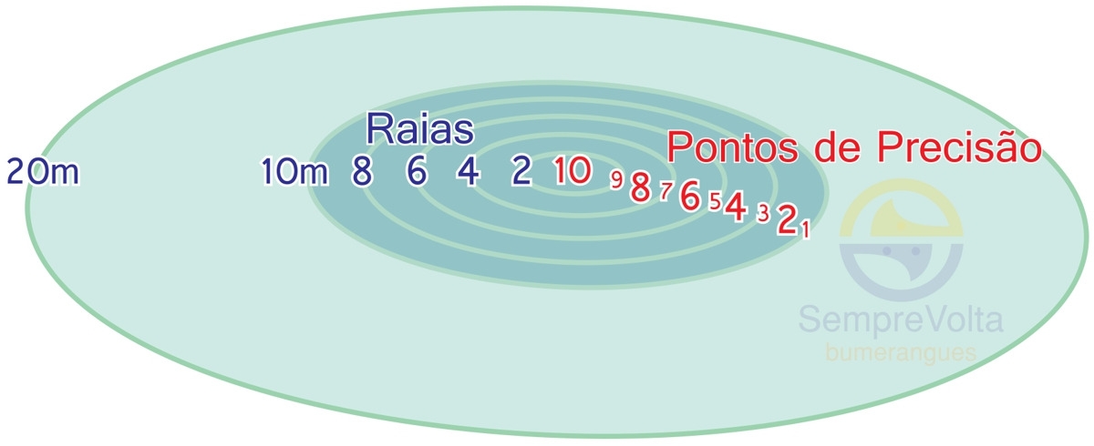 - Distância mínima de vôo do bumerangue para ser considerado arremesso válido: 20m